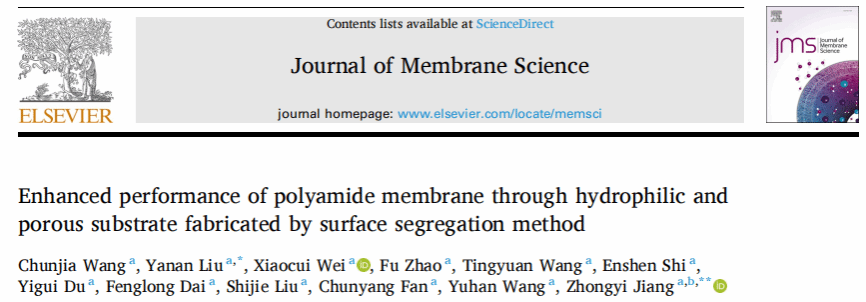 姜忠义教授团队的研究通过表面偏析策略制备基底实现了对界面聚合过程的精准调控,为制备兼具高脱盐率与长期稳定性的高性能聚酰胺反渗透复合膜开辟了一条简便高效的新路径。